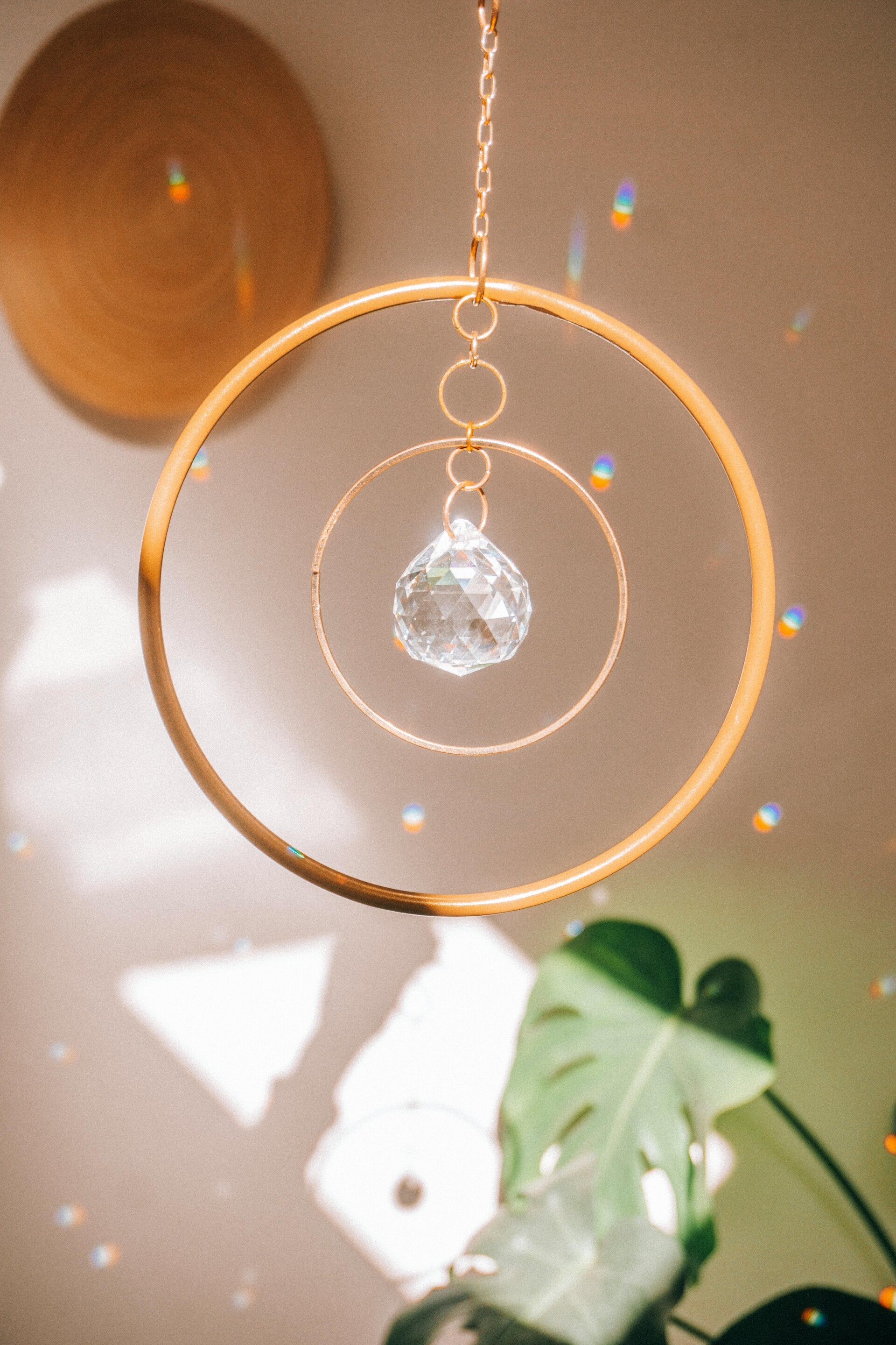 Chaque capteur de soleil est une pièce unique, façonnée à la main, qui capture les rayons du soleil pour les transformer en jeux de lumière et reflets colorés.