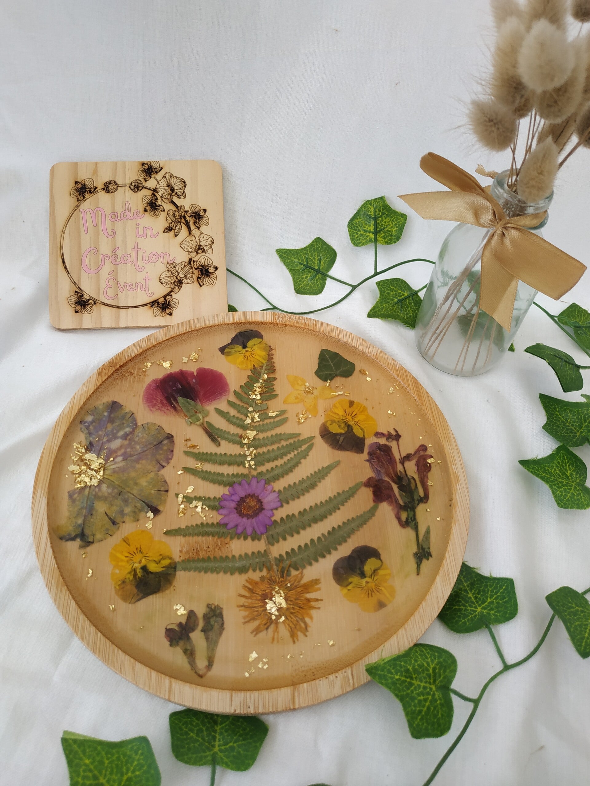 Chaque plateau raconte une histoire — celle d’une fleur cueillie, pressée, et figée dans le temps pour embellir vos moments de convivialité. 🌸